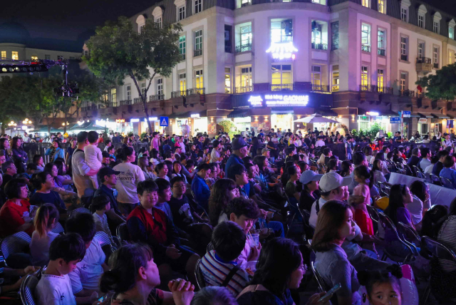 ▲'한-베 우정의 거리 축제'의 베트남 관람객들이 밀양아리랑예술단의 '날 좀 보소' 공연을 관람하고 있다. ⓒ밀양시