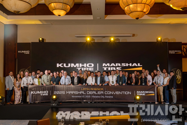 먼저 파나마시티에서 열린 '마샬 딜러 컨벤션'에는 중남미 12개국 17개 주요 딜러사 관계자 40여 명이 참석했다. 금호타이어는 이 자리에서 수출용 브랜드인 '마샬'의 운영 전략과 주요 신제품을 소개하며 현지 딜러사들과의 전략적 협력 관계를 한층 강화했다.