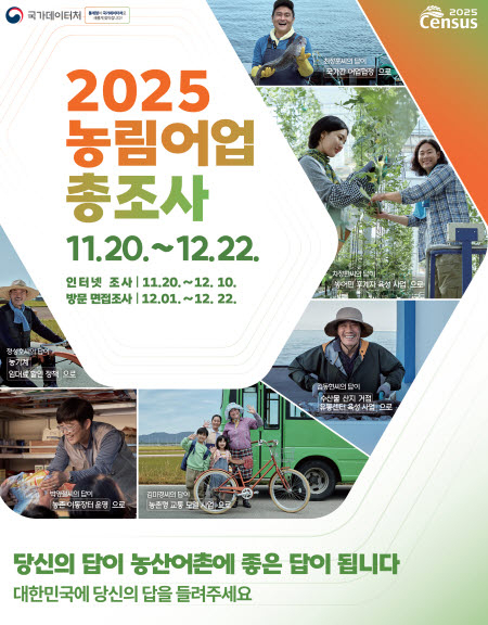 영월군과 국가데이터처(구 통계청)는 11월 20일부터 12월 22일까지 ‘2025 농림어업총조사’를 실시한다.