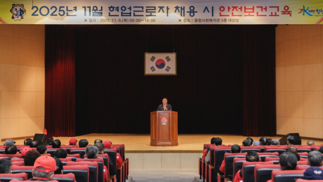 종합사회복지관 3층 대강당에서 진행한 채용 시 교육에는 산불감시원과 진화대, 일자리경제과 신규 채용자 등 180여 명이 참여했으며 교육은 산업안전 전반과 위험성평가·산업재해 예방 등 현장에서 바로 적용할 수 있는 실무 내용을 중심으로 구성했다.