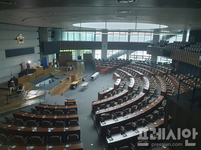 현재 도의회 13개 상임위원회는 민주당과 국힘이 동수로 배치돼 국힘의 의결 불참이 실현될 경우 안건 통과는 불가능해진다.