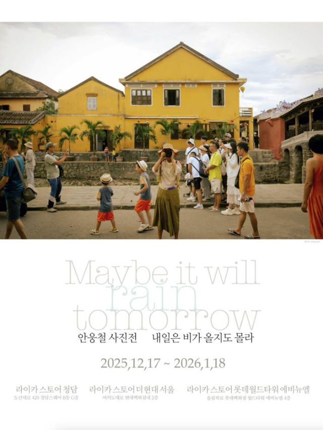 안웅철 사진작가가 오는 12월 17일부터 2026년 1월 18일까지 개인전 <내일은 비가 올지도 몰라(Maybe it will rain tomorrow)>를 연다. 이번 전시는 라이카 코리아의 세 전시 공간인 라이카 스토어 청담, 라이카 스토어 더 현대 서울, 라이카 스토어 롯데월드타워 에비뉴엘에서 동시에 열리는 이례적 규모로 마련됐다. 작가가 최근 4년간 라이카 카메라로 촬영한 50여 점의 신작을 선보인다.