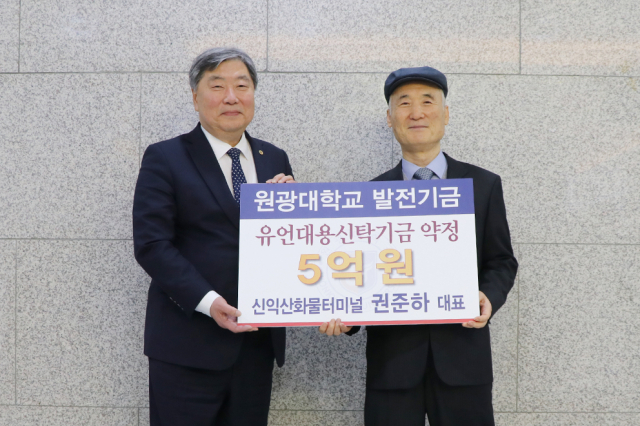 국내 최초로 '유언대용신탁기부'를 시작해 기부를 이어오고 있는 권준하 신익산화물터미널 대표가 원광대학교(총장 박성태)에 발전기금 5억 원을 역시 유언대용신탁으로 기부했다.