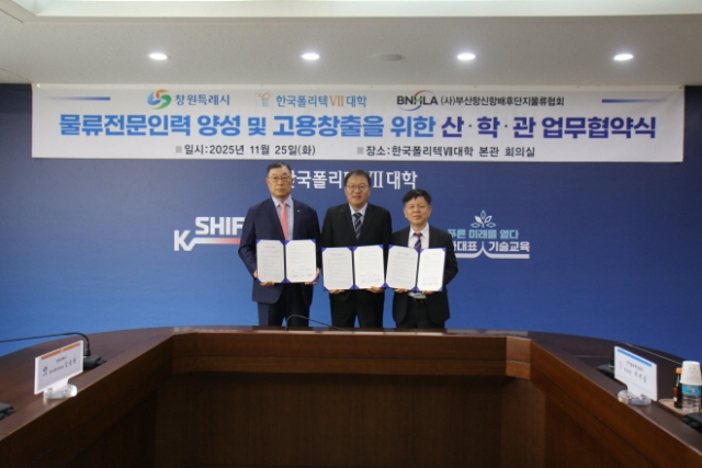 창원 소재 한국폴리텍Ⅶ대학은 창원시-(사)부산항신항배후단지물류협회와 물류 전문 인력 양성을 위한 산·학·관 업무협약을 체결했다고 26일 밝혔다.