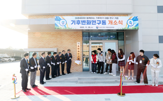 전북자치도 혁신도시에 있는 농촌진흥청(청장 이승돈)은 기후변화에 선제적으로 대응하고 지속 가능한 농업기술을 개발하기 위해 '기후변화연구동'을 준공하고 26일 국립농업과학원에서 개관식을 열었다.