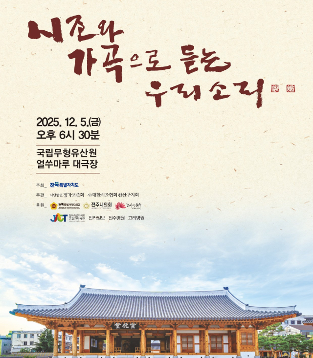 이번 공연은 (사)정가보존회와 (사)대한시조협회 완산구지회가 주관하며 정가무형유산 활성화를 위한 선양사업의 일환으로 추진된다.