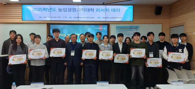 강원대학교(총장 정재연) 농업생명과학대학(학장 이주경)은 11월 28일 춘천캠퍼스 농업생명과학대학2호관 408호에서 ‘2025 농업생명과학대학 학부생 리서치데이’를 개최했다.