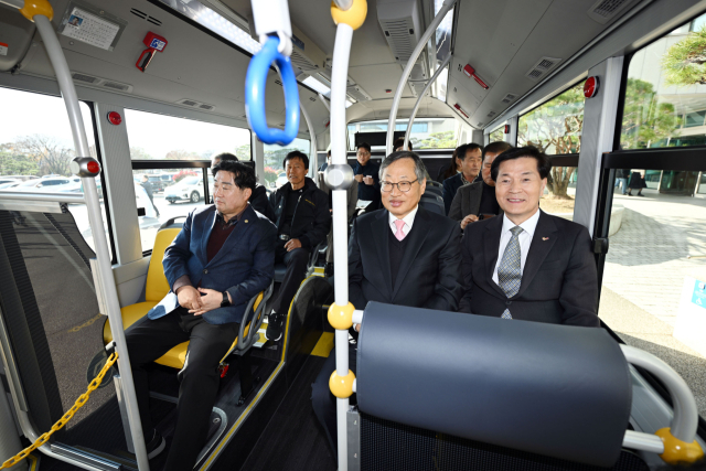 밀양시는 지난 1일 시청 광장에서 '밀양시 1호 수소저상 시내버스 시승식'을 개최했다고 밝혔다.