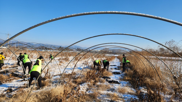 이날 양 기관 직원 20여 명이 참여해 대파 밭 멀칭비닐 제거, 영농부산물 파쇄 작업 등 영농환경 정비에 힘을 보탰다.