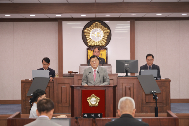 김윤철 경남 합천군수는 지난 5일 열린 제295회 합천군의회 제2차 정례회에서 2026년도 예산안을 제출하며 시정연설을 통해 예산 편성과 내년도 군정 운영 방향을 밝혔다.