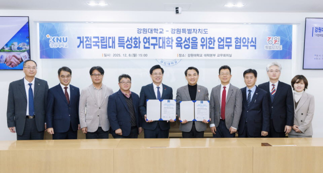강원대학교(총장 정재연)와 강원특별자치도(도지사 김진태)는 8일 학교 대학본부 3층 교무회의실에서 ‘거점국립대 특성화 연구대학 육성’을 위한 협약을 했다.