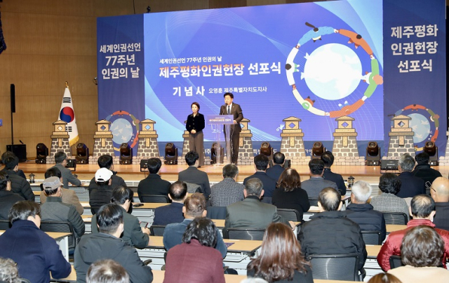 제주도는 10일 오전 제주4·3평화공원에서 열린 '세계인권선언 77주년 인권의 날 기념식'에서 제주평화인권헌장 선포식을 진행했다.