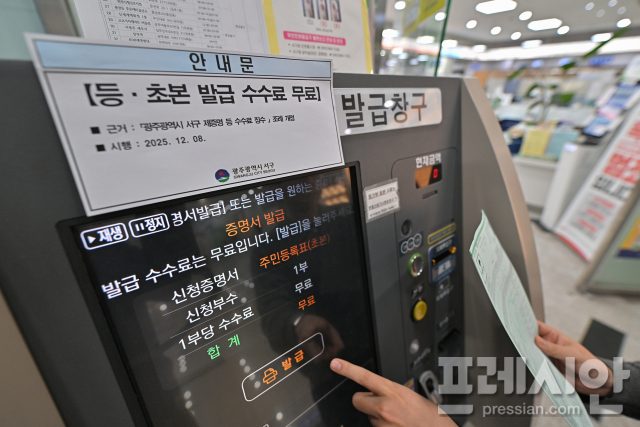 광주광역시 서구는 '광주광역시 서구 제증명 등 수수료징수 조례' 개정을 통해 무인민원발급기 주민등록 등·초본 발급 수수료 면제 근거를 마련하고, 관내 모든 무인발급기에 이를 일괄 적용했다고 11일 밝혔다.