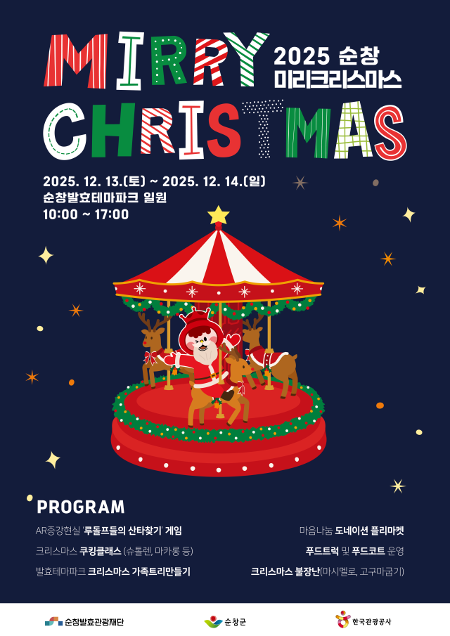 (재)순창발효관광재단은 13일부터 14일까지 순창발효테마파크에서 '2025 순창 미리 크리스마스' 축제를 개최한다고 11일 밝혔다.