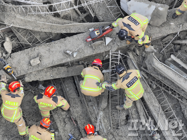소방당국은는 이날 "추가 붕괴 위험에 대비하고, 구조대원의 안전한 내부 진입을 위한 구조물 안정화 및 보강 작업을 위해 구조 작업을 일시 중단한다"고 밝혔다.
