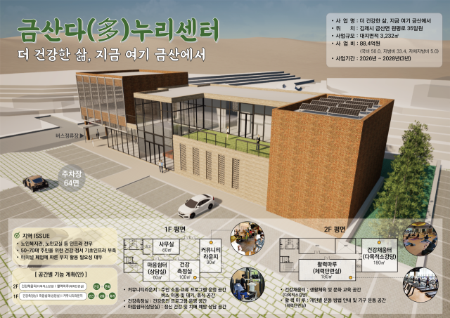 무주 안성면에는 같은 규모의 사업비를 투입해 3층 규모의 ‘백세건강센터’를 조성하고, 로컬푸드 판매공간과 창업·문화 공간을 함께 조성해 지역 공동체 기능을 강화할 방침이다.
