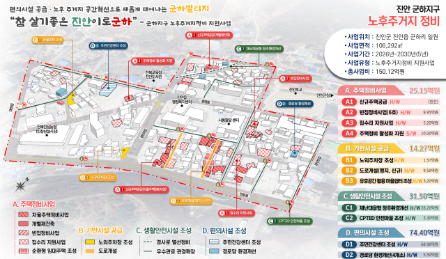 노후주거지 정비지원 사업에는 진안군 군하지구와 임실군 이도지구가 선정됐다. 진안 군하지구는 총사업비 135억 원(국비 81억 원)을 투입해 노후 주택 정비와 도로·주차장 개선을 추진하며, 임실 이도지구는 183억 원(국비 110억 원)을 들여 집수리 지원과 도로 환경 개선, 소공원 조성 등을 진행한다. 특히 임실 이도지구에는 실내체육시설과 주민 어울림센터도 함께 들어설 예정이다.