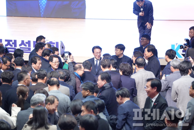 도청에 들어설 때 김 총리를 향한 환영 인파와 저서 '다시 민주주의' 사인 요청, 꽃다발과 인형 전달 등이 이어졌고, 강연이 끝난 후에도 사진을 함께 찍으려는 인파가 몰려 그의 인기를 실감케 했다.