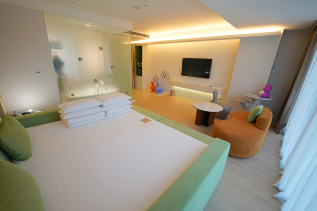 ‘슈페리어 패밀리룸’은 유럽의 친환경마크인 오코텍스(OEKO-TEX) 인증을 받은 최고급 저상형 패밀리 침대가 마련되어 있어 최대 4인 가족이 숙면을 취할 수 있으며, 토끼의자와 곰돌이 무드등 등을 배치해 포근한 분위기를 연출했다.