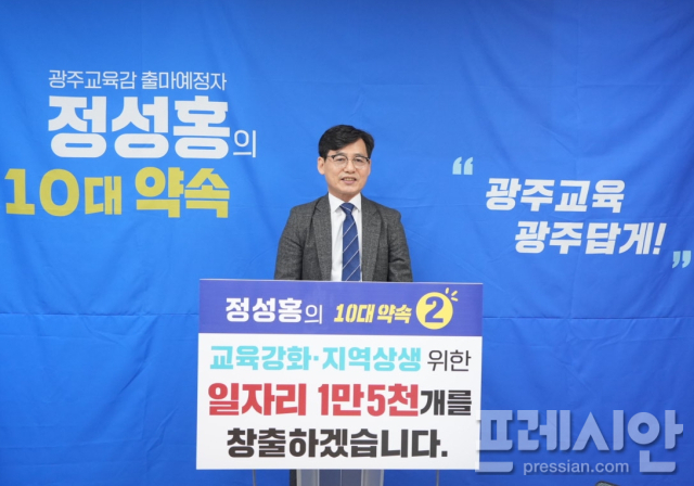 정성홍 전 광주광역시교육감 선거 민주진보 단일후보(2022년 광주민주진보교육감 단일화추진위 선출. 정성홍·김선호 참여)가 교사의 업무 부담을 덜고 학생들의 수업·돌봄·안전을 강화하기 위해, 임기 4년간 연평균 3800여 개씩 총 1만 5000여 개의 교육 관련 일자리를 창출하겠다는 정책 공약을 발표했다.