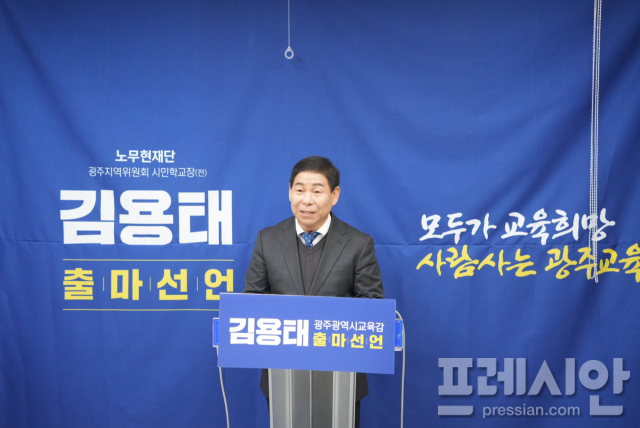 김용태 전 노무현재단 광주지역위원회 시민학교장이 23일 광주시교육청에서 기자회견을 열고 내년 광주교육감 선거 출마를 공식 선언했다.