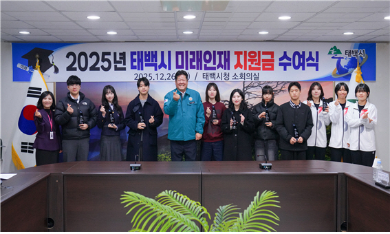 태백시(시장 이상호)는 지난 26일 시청 소회의실에서 2025년 태백시 미래인재 신규 선발자와 그 가족 등이 참석한 가운데 미래인재 지원금 및 인증패 수여식을 개최했다.
