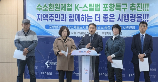 포항환경연대, 탄소제로도시포항네트워크, 공정경제포항시민연합은 12월 29일 오전 포항시청 브리핑룸에서 공동 기자회견을 열고 ‘저탄소철강 포항특구’ 지정을 추진하는 한편, 실효성 있는 K-스틸법 시행령 제정을 요구했다.