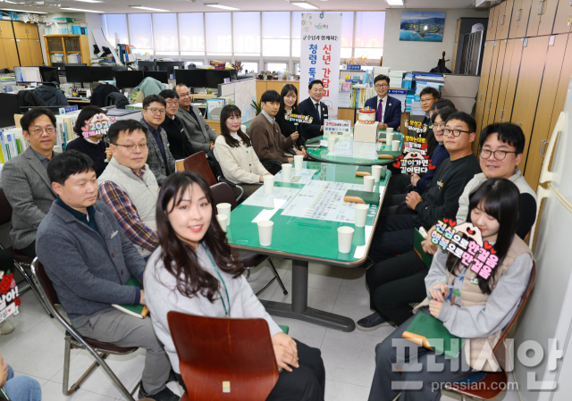 5일 군에 따르면 매년 관행적으로 진행된 새해 시무식 대신 김철우 군수가 전 부서를 차례대로 방문하며 직원들과 인사를 나누고 의견을 청취하는 '말·말·말(言·馬·茶)로 통(通)하는 공감형 부서 방문'으로 2026년 첫 공식 업무를 시작했다.