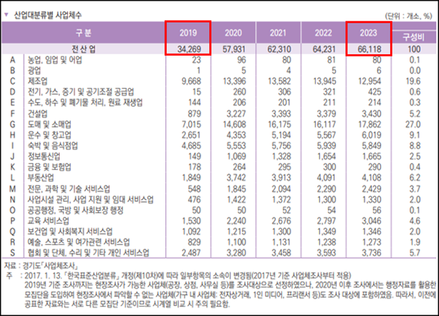 김포시 소재 기업체 수가 2023년 기준 6만6118개로 2019년(3만1849개) 대비 92.9%증가한 것으로 조사됐다. 특히, 300~499명 규모의 중대형 사업체 수가 250% 증가해 지역경제의 자족기능이 강화되고 있는 것으로 분석됐다.