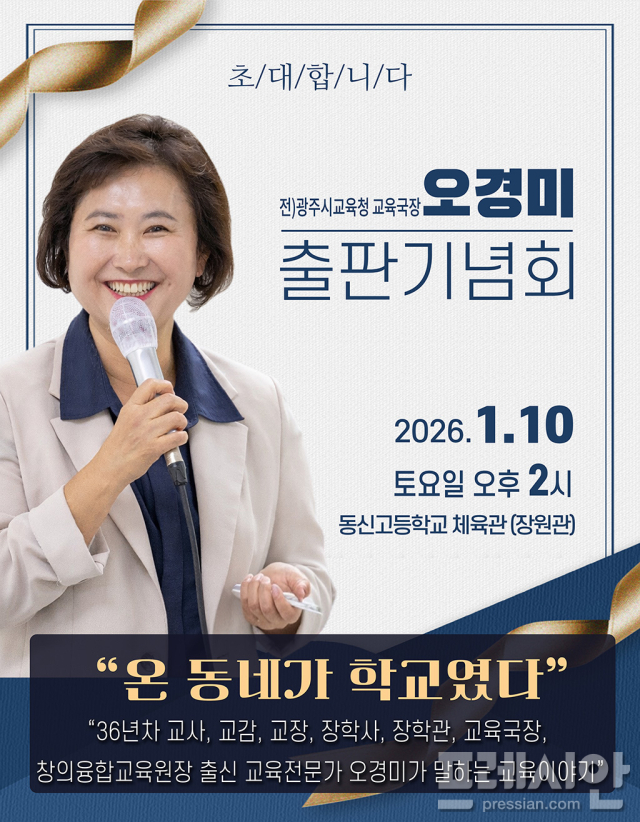 이번 출판기념회는 "교육은 학교 담장을 넘어 지역사회 전체가 함께 책임져야 한다"는 오 전 교장의 교육 철학을 시민들과 공유하는 자리다. 특히 행사가 열리는 '고등학교 체육관'은 교육의 본질인 학교 현장에서 시민들과 직접 소통하며 현장의 목소리를 경청하겠다는 그의 의지를 상징적으로 보여준다.