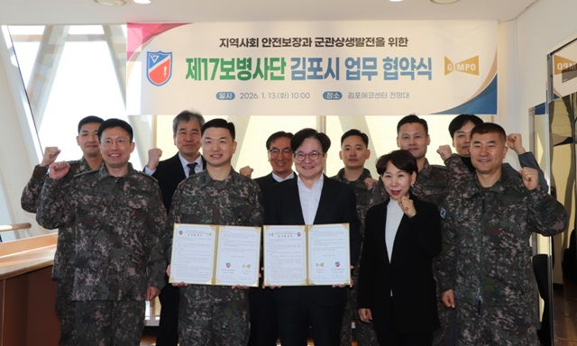 김포시가 육군 제17보병사단과 군관상생발전협의체 구축을 위한 업무협약을 13일 체결했다.