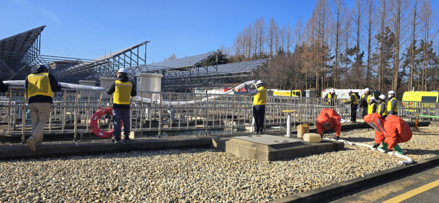 이날 훈련은 정수사업소 내 응집지 인근에서 출처 불명의 액체용기가 발견되고 미상의 액체가 누출된 상황을 가정해 진행됐으며, 유해화학물질에 의한 오염 가능성을 염두에 두고 화학테러 수준의 대응 절차를 점검했다.
