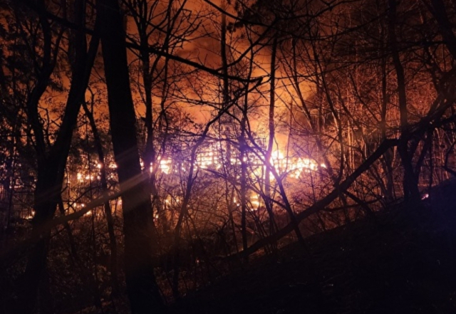22일 부산소방재난본부와 산림청, 기장군 등에 따르면 전날 오후 7시45분께 기장군 기장읍 청강리의 한 타일 제조 공장에서 발생한 화재는 공장 건물을 전소시킨 뒤 강한 바람을 타고 인접 야산으로 확산됐다. 소방당국은 화재 발생 약 2시간 만인 오후 9시50분께 대응 2단계를 발령해 인근 소방서 인력과 장비를 추가 투입했다.