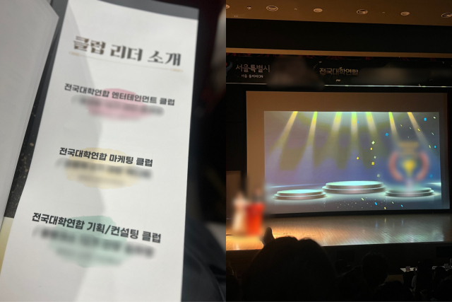 단순히 웹사이트 구조가 우연히 닮은 것이었을까. 한재연 씨는 지난해 8월 열린 동아리 연합 행사에서 이상함을 느꼈다고 전했다. 당시 행사장에는 김예원 씨와 최승희 씨가 속한 마케팅(A)과 엔터테인먼트(B)뿐만 아니라 기획(C)까지 전혀 다른 간판을 내건 3개의 연합동아리가 한자리에 모였다. 한 씨는 "원래는 A 연합동아리만의 고유 행사로 알고 있었는데, 주최 측에서 '이번에는 여러 동아리가 연합해 스케일을 키웠다'고 홍보했다"며 "현장에서 3개 연합동아리가 같은 시스템으로 운영되고 있다는 걸 알게 됐다"고 설명했다.