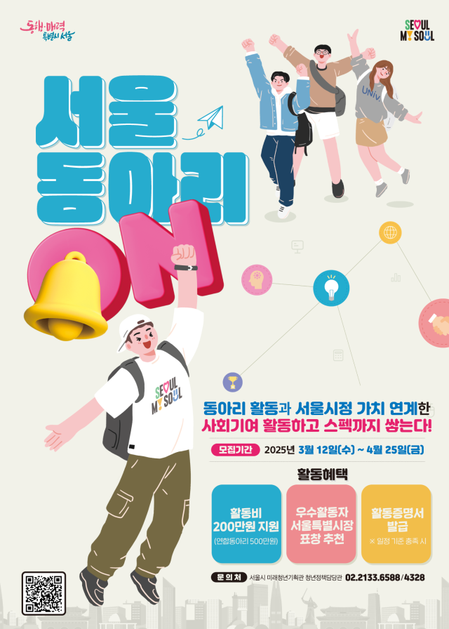 3개 연합동아리는 모두 서울시에서 운영하는 대학생 동아리 사회기여활동 지원사업 '서울 동아리ON'의 수혜를 받았다. 서울 동아리ON은 대학생 동아리 활동을 활성화하고 지역사회 문제 개선에 기여할 수 있도록 지원하는 사업으로, 연합동아리의 경우 최대 500만 원의 활동비를 지원받을 수 있다. 모집 개요에 따르면, 동일 유사사업으로 국가, 지방자치단체, 공공기관 등으로부터 국비·시비·구비 등을 지원받고 있거나 지원받을 예정인 동아리는 지원 대상에서 제외된다.