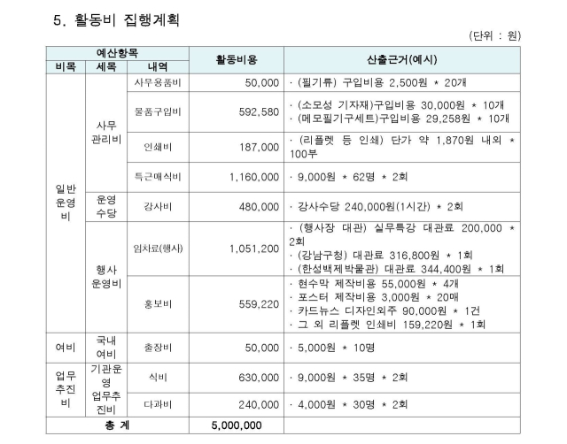 서울 동아리ON 사업을 주관하는 서울시 미래청년기획관 측은 "대학생으로 구성된 동아리를 지원하려고 만든 사업"이라고 설명했다. <대학알리>가 정보공개청구를 통해 받은 자료에 따르면, 3개 연합동아리는 모두 최대 지원금액인 500만 원을 지급받았다. 실질적인 운영 주체가 기업이라는 정황이 드러난 상황에서, 3개 연합동아리가 모두 보조금을 수령한 것이 사업 본연의 취지와 부합하는지, '부정수급'은 아닌지 검토가 필요해 보인다.