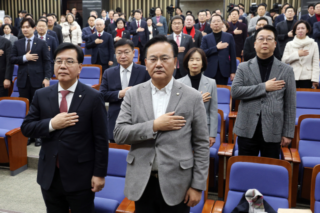 국민의힘 송언석 원내대표는 이날 오후 국회에서 '쌍특검법' 촉구 등 대여 투쟁 방향을 논의하기 위해 의원총회를 소집했다. 일부 원외당협위원장들도 불렀다. 하지만 언론의 취재를 허용하지 않은 비공개 의총이 시작되자, 막상 드러난 건 한 전 대표 징계안을 둘러싼 갈등이었다. 의총은 2시간가량 진행됐다.