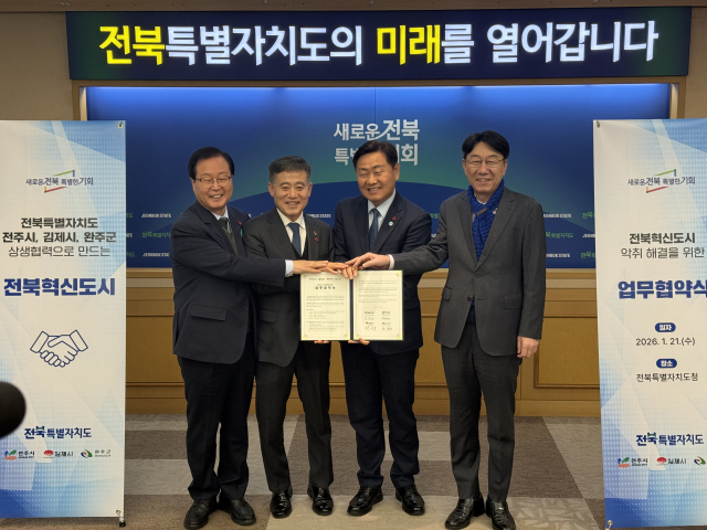 결국 전주시와 완주군은 김제시의 끊임없는 호소와 노력에 용지 특별관리지역 잔여축사 매입을 위한 사업비를 분담하기로 손을 맞잡았고 마침내 지난 1월 21일 도지사와 3개 단체장이 참석한 가운데 혁신도시 악취 해결을 위한 업무협약을 맺었다.