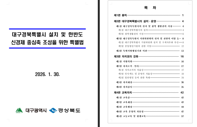 대구시와 경상북도는 30일 ‘대구경북특별시 설치 및 한반도 신경제 중심축 조성을 위한 특별법(이하 특별법)’이 국회에서 발의됐다고 공식 발표했다.