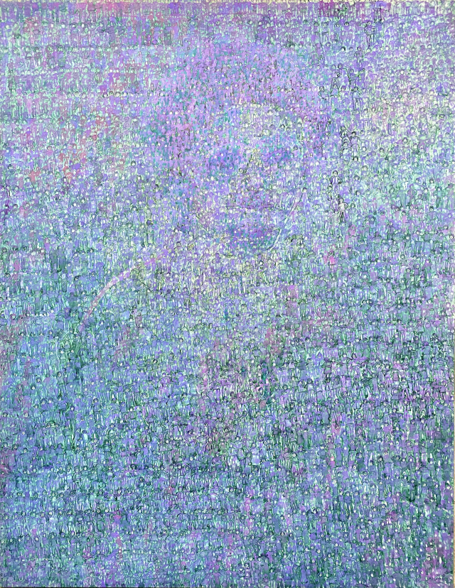 김 작가의 작품 세계는 회화적 언어로 사라짐을 기록하는 일종의 ‘기억의 예술’이다. 작품의 화면은 바람에 흩날리는 잊혀지는 이름들의 합창처럼 보인다. 멀리서 바라보면 고요한 색의 바다 같지만, 가까이 다가서면 그 안에는 수천, 수만의 인간 존재가 밀물처럼 밀려온다.