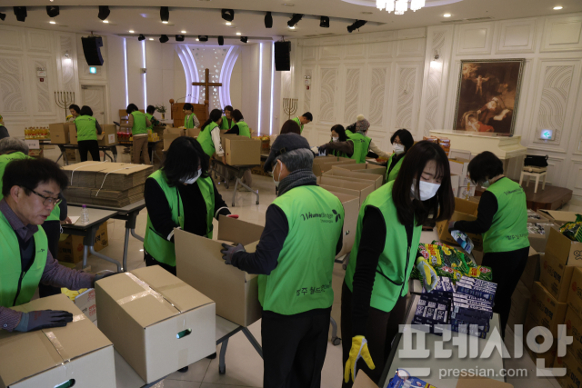 30여 명의 회원들이 모인 가운데 진행된 행사에서 참석자들은 사전에 준비된 물품을 박스 250개에 담았다.