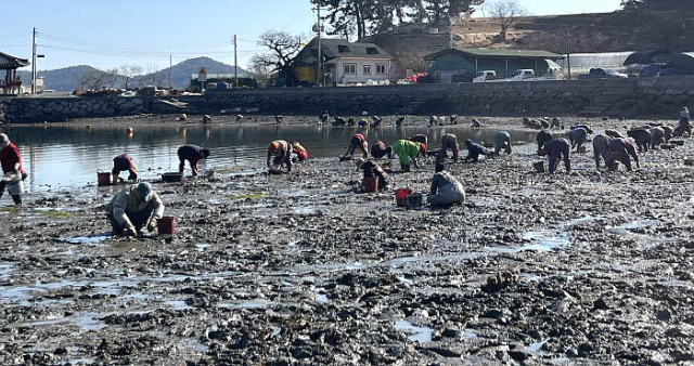 설 명절을 앞둔 지난 3일 이 마을에서 열린 올해 첫 바지락·조개캐기 체험행사에 체험객 200여 명이 모였다.