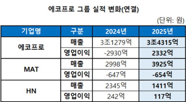 계열사별로는 에코프로머티리얼즈가 지난해 4분기 영업 흑자로 전환했다. 가동률 상승과 메탈 가격 반등에 따른 재고평가충당금 환입 효과가 반영된 결과다.