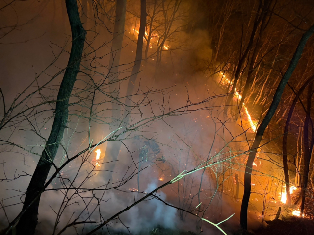 양남면 신대리에서도 동시에 산불에 발생했으며 소방당국은 어젯밤 10시 11분쯤 관할 인력 전체가 출동하는 대응 1단계를 발령하고 산불 진화에 나섰다.