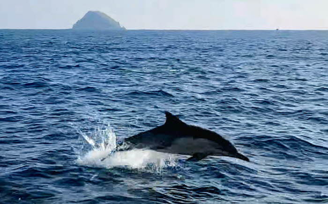 이날 관찰된 참돌고래는 국립공원 순찰선 주변을 따라 50여 마리가 무리지어 유영하며 모습을 드러냈다.