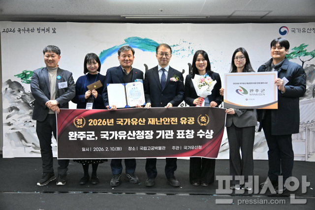완주군은 10일 서울 국립고궁박물관에서 열린 시상식에서 ‘2026 국가유산 재난 안전 유공’ 국가유산청장 기관 표창을 수상했다. 이 표창은 국가유산 재난 예방과 안전관리 체계 구축에 기여한 기관과 개인에게 수여되는 것으로, 완주군은 차관급 훈격의 기관 표창을 받았다.