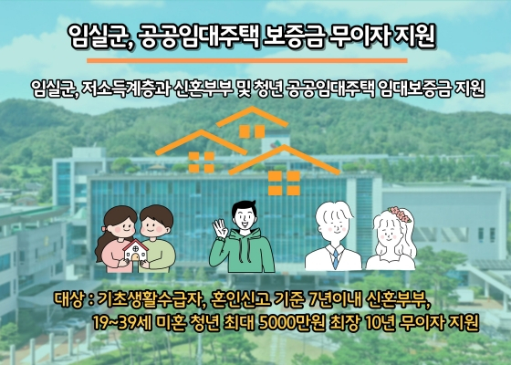 전북 임실군이 무주택 기초생활수급자와 신혼부부, 청년의 주거 안정을 위해 '공공임대주택 임대보증금 지원사업'을 지속 추진한다.
