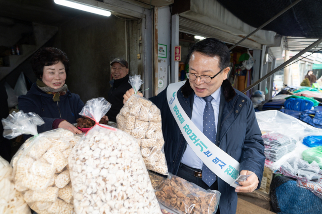 정헌율 익산시장과 직원들은 설 명절을 앞두고 북부·익산장, 남부·구시장, 중앙·매일·서동시장 등 7개 전통시장을 방문해 명절 장보기에 나섰다.