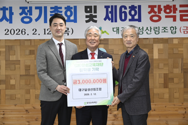 (재)달성교육재단은 12일, 대구달성산림조합(조합장 이석원)으로부터 300만 원의 장학금을 기탁받았다고 밝혔다.