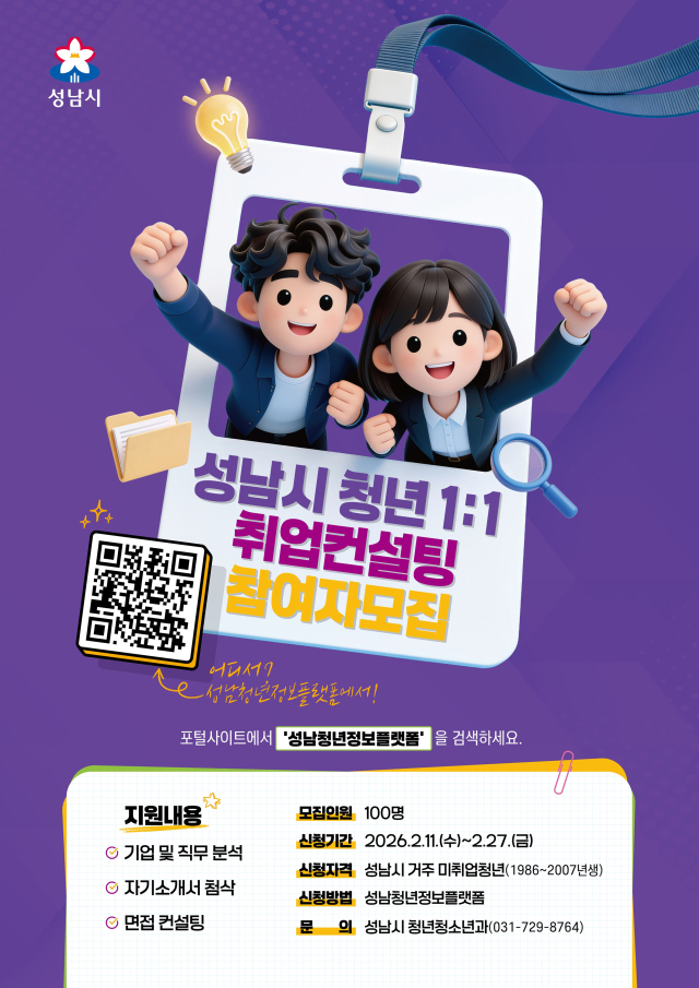 지원 신청은 오는 27일까지 성남청년정보플랫폼을 통해 온라인으로 접수하면 된다.